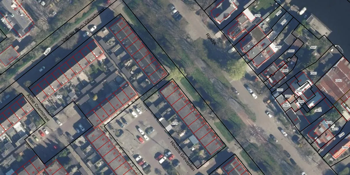 Het perceel waarop Rijndijk 263 staat heeft een oppervlakte van 1038 m². Dit is een zeer groot perceel. De perceeloppervlakte wordt geregistreerd door het Kadaster. Gedetailleerde informatie over de maten van dit perceel kunt u vinden in het rapport Kadastrale kaart met maatvoering van Rijndijk 263.