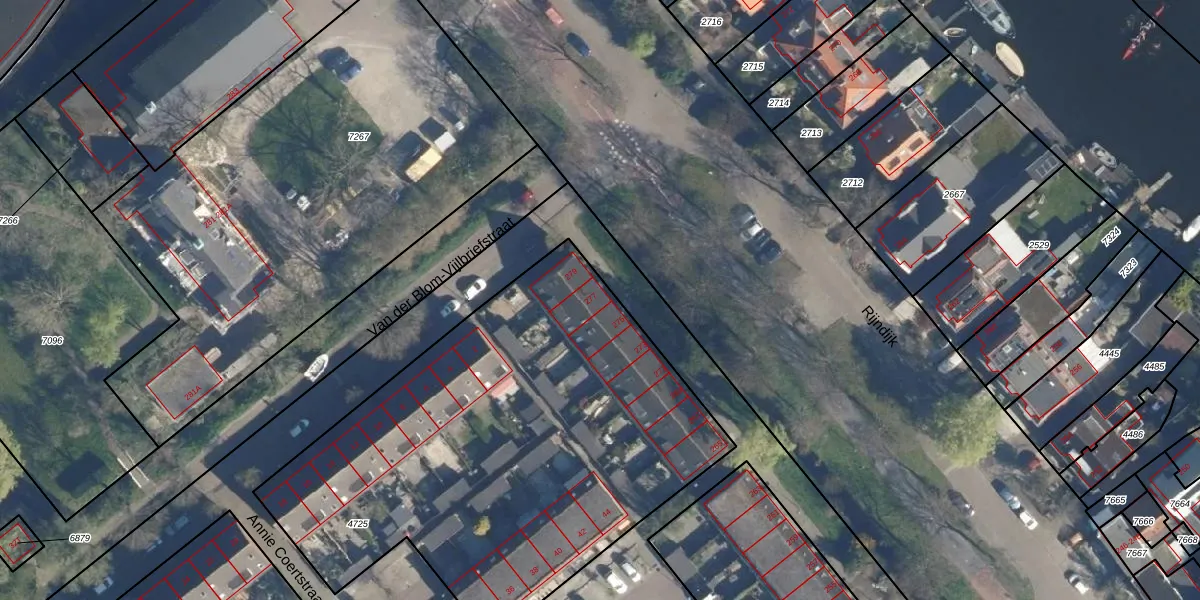 Het perceel waarop Rijndijk 277 staat heeft een oppervlakte van 7199 m². Dit is een zeer groot perceel. De perceeloppervlakte wordt geregistreerd door het Kadaster. Gedetailleerde informatie over de maten van dit perceel kunt u vinden in het rapport Kadastrale kaart met maatvoering van Rijndijk 277.