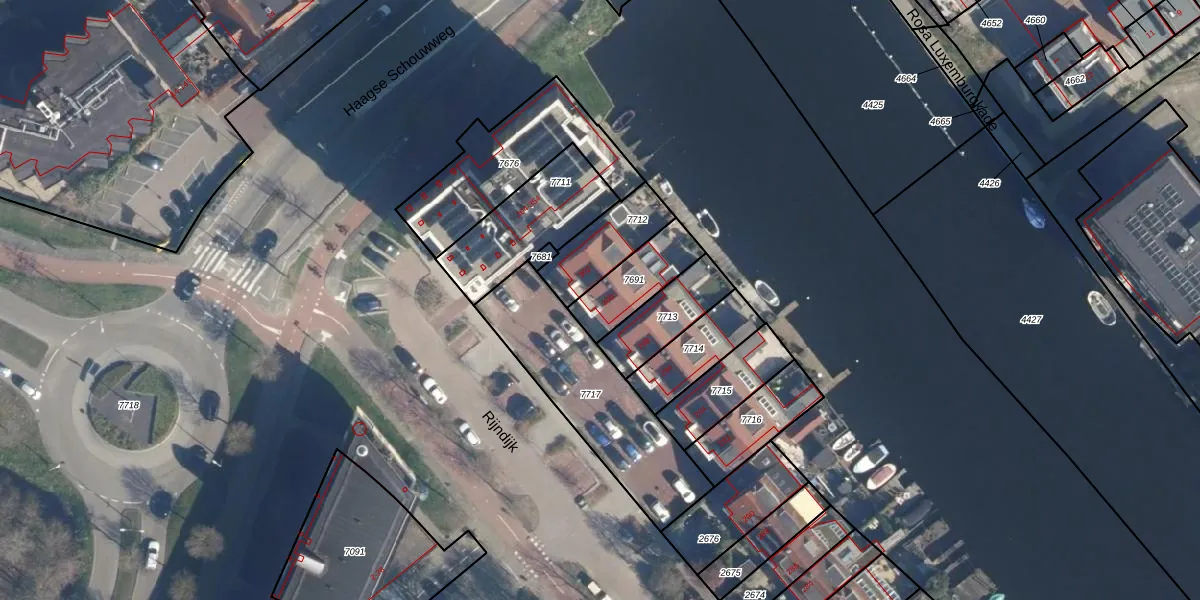 Rijndijk 300 is gelegen op kadastraal perceel LDN01W7691. Deze kadastrale aanduiding is uniek en wordt gebruikt door het Kadaster om eigendomsrechten en andere zakelijke rechten vast te leggen. Het perceel maakt onderdeel uit van de kadastrale gemeente Leiden.