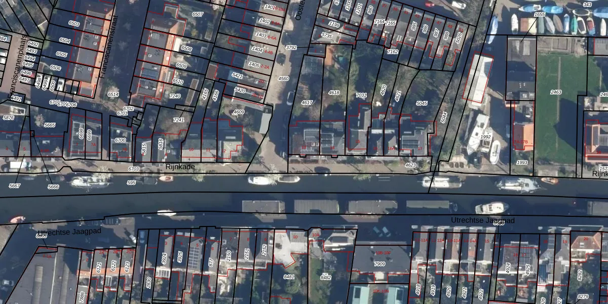 Het perceel waarop Rijnkade 13 staat heeft een oppervlakte van 297 m². Dit is een middelgroot perceel. De perceeloppervlakte wordt geregistreerd door het Kadaster. Gedetailleerde informatie over de maten van dit perceel kunt u vinden in het rapport Kadastrale kaart met maatvoering van Rijnkade 13.