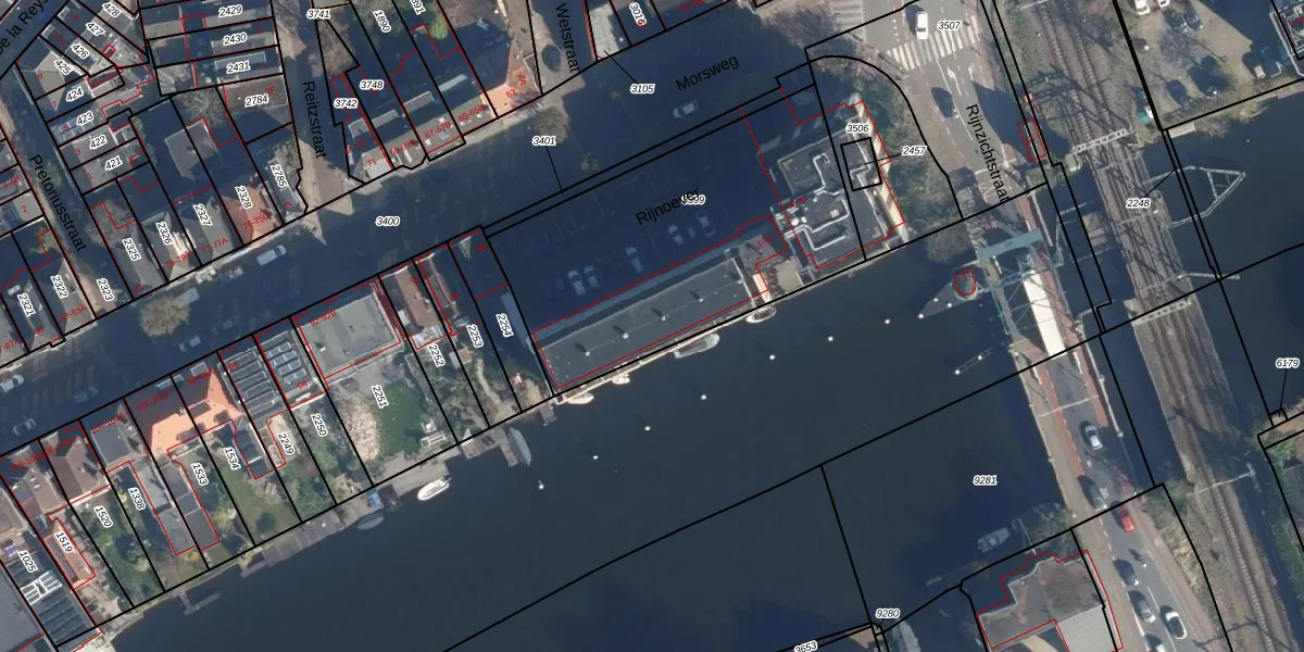 Het perceel waarop Rijnoever 44 staat heeft een oppervlakte van 1475 m². Dit is een zeer groot perceel. De perceeloppervlakte wordt geregistreerd door het Kadaster. Gedetailleerde informatie over de maten van dit perceel kunt u vinden in het rapport Kadastrale kaart met maatvoering van Rijnoever 44.