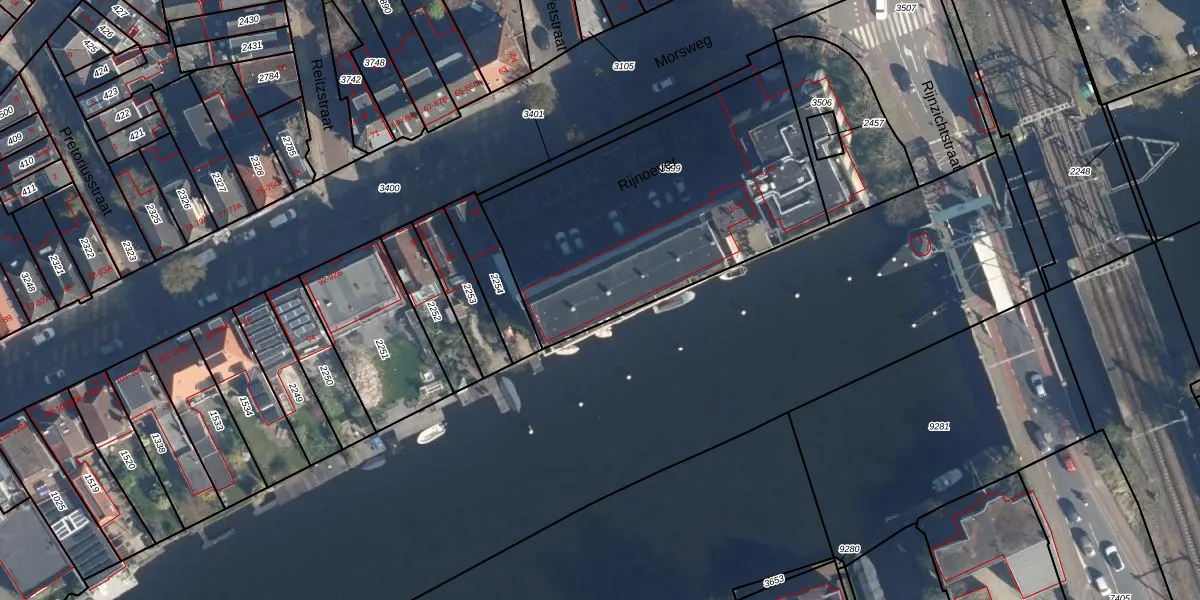 Rijnoever 45 is gelegen op kadastraal perceel LDN01P3399. Deze kadastrale aanduiding is uniek en wordt gebruikt door het Kadaster om eigendomsrechten en andere zakelijke rechten vast te leggen. Het perceel maakt onderdeel uit van de kadastrale gemeente Leiden.