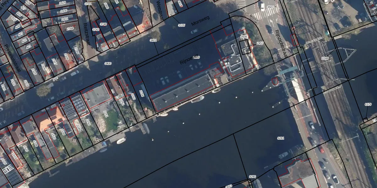 Rijnoever 50 is gelegen op kadastraal perceel LDN01P3399. Deze kadastrale aanduiding is uniek en wordt gebruikt door het Kadaster om eigendomsrechten en andere zakelijke rechten vast te leggen. Het perceel maakt onderdeel uit van de kadastrale gemeente Leiden.