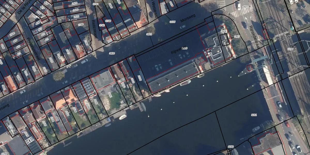 Rijnoever 9 is gelegen op kadastraal perceel LDN01P3399. Deze kadastrale aanduiding is uniek en wordt gebruikt door het Kadaster om eigendomsrechten en andere zakelijke rechten vast te leggen. Het perceel maakt onderdeel uit van de kadastrale gemeente Leiden.