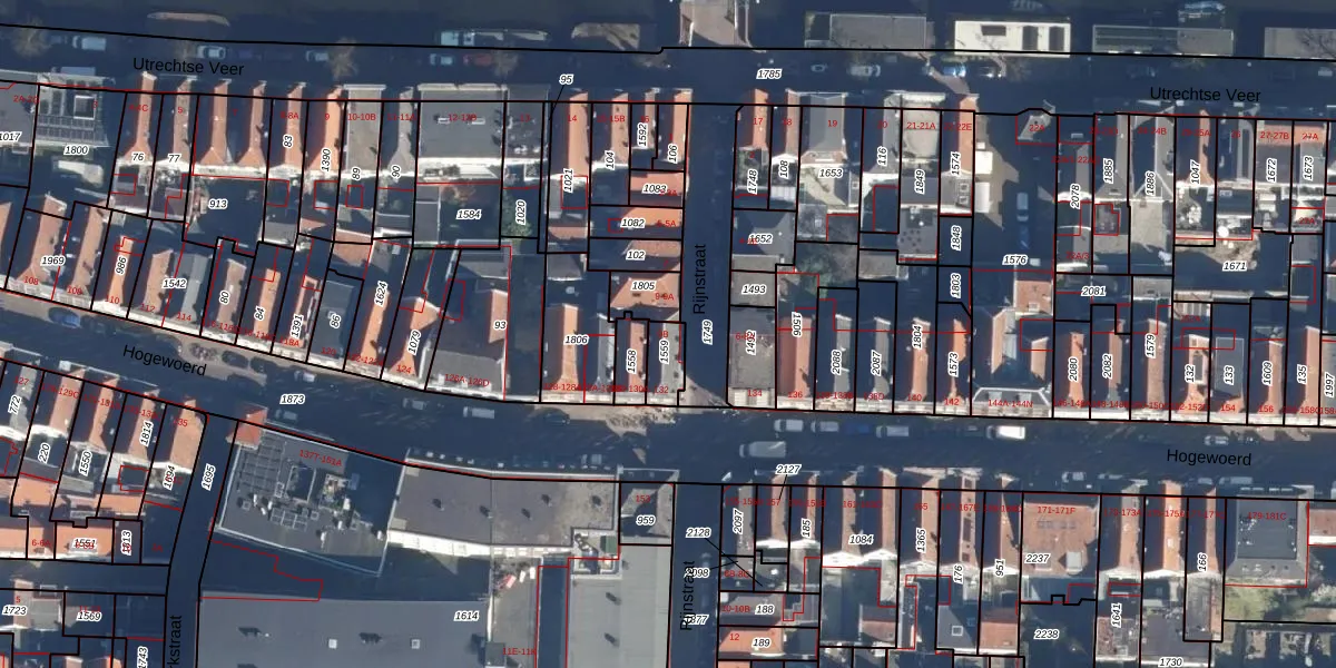 Rijnstraat 9-B is gelegen op kadastraal perceel LDN01D1559. Deze kadastrale aanduiding is uniek en wordt gebruikt door het Kadaster om eigendomsrechten en andere zakelijke rechten vast te leggen. Het perceel maakt onderdeel uit van de kadastrale gemeente Leiden.