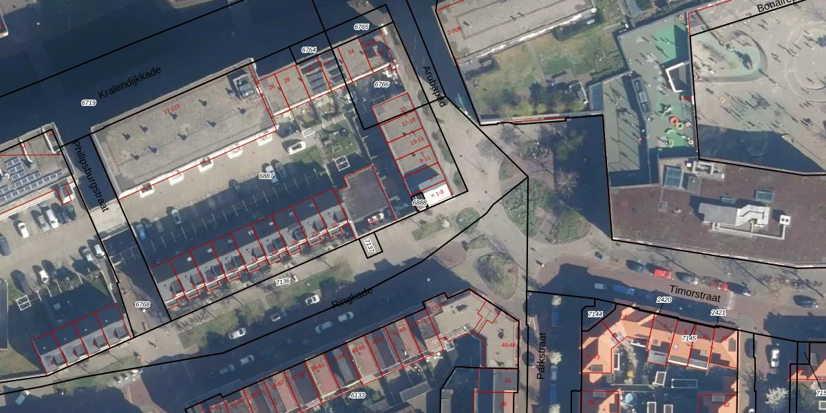 Het adres ligt op het perceel LDN01-K-6887, dat zich in de kadastrale gemeente Leiden bevindt. Het perceel is met 3390 m² relatief groot. Het gemiddelde ligt in de kadastrale gemeente Leiden op 704,75 m². De grootste perceeloppervlakte in de kadastrale gemeente is 51,8 ha. De kleinste oppervlakte bedraagt 0 m². Op het perceel zijn 87 adressen aanwezig. In de Basisregistratie Kadaster (BRK) werden de grenzen van het perceel geregistreerd op 18-11-2019.