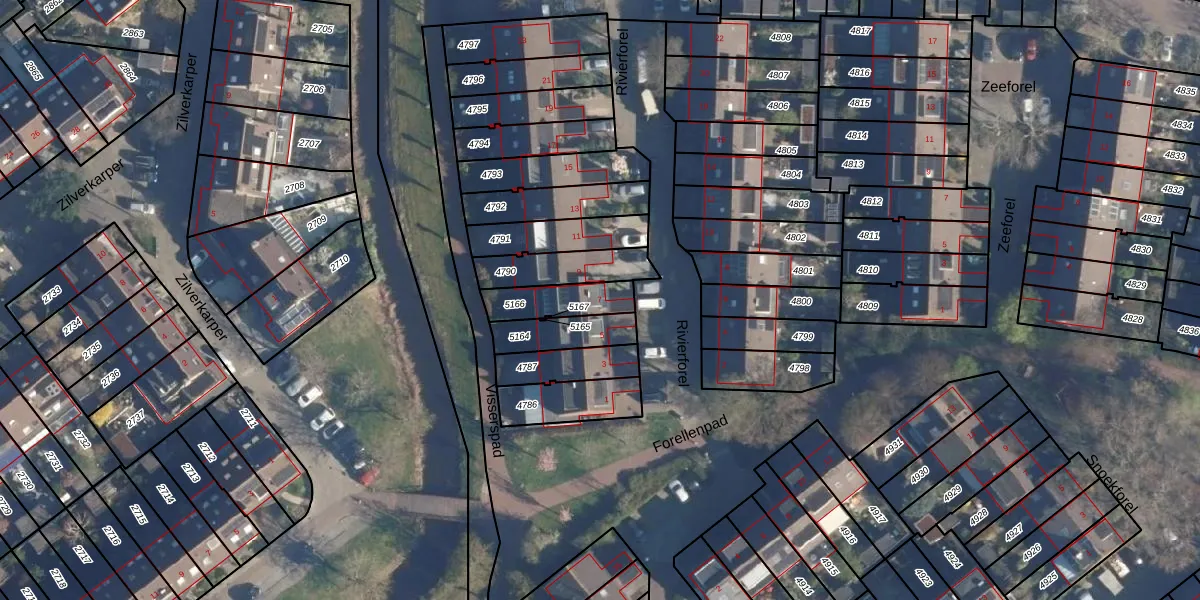 Rivierforel 7 is gelegen op kadastraal perceel LDN01S5166. Deze kadastrale aanduiding is uniek en wordt gebruikt door het Kadaster om eigendomsrechten en andere zakelijke rechten vast te leggen. Het perceel maakt onderdeel uit van de kadastrale gemeente Leiden.