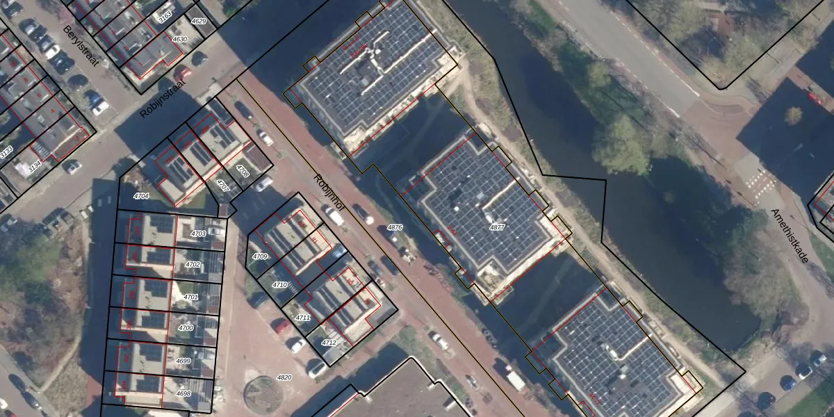 Het perceel waarop Robijnhof 11 staat heeft een oppervlakte van 3196 m². Dit is een zeer groot perceel. De perceeloppervlakte wordt geregistreerd door het Kadaster. Gedetailleerde informatie over de maten van dit perceel kunt u vinden in het rapport Kadastrale kaart met maatvoering van Robijnhof 11.