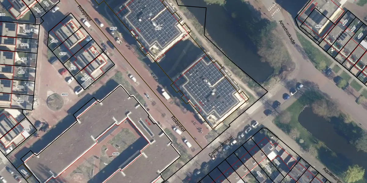 Het perceel waarop Robijnhof 50 staat heeft een oppervlakte van 3196 m². Dit is een zeer groot perceel. De perceeloppervlakte wordt geregistreerd door het Kadaster. Gedetailleerde informatie over de maten van dit perceel kunt u vinden in het rapport Kadastrale kaart met maatvoering van Robijnhof 50.