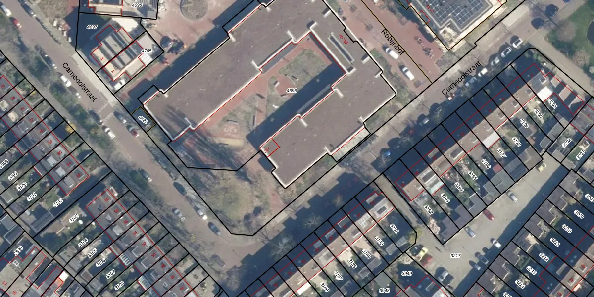Het perceel waarop het adres ligt is LDN01-X-4696. De afkorting 'LDN01' staat voor kadastrale gemeente Leiden. De gemiddelde perceeloppervlakte in de kadastrale gemeente Leiden is 703,94 m². Dit perceel is met zijn 3335 m² dus groter dan gemiddeld. De grootste perceeloppervlakte in de kadastrale gemeente is 51,8 ha. De kleinste oppervlakte bedraagt 0 m². Op het perceel liggen in totaal 7 adressen. De huidige grenzen van het perceel zijn digitaal in de Basisregistratie Kadaster (BRK) geregistreerd op 05-11-2024.