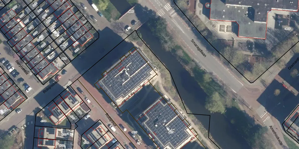 Het perceel waarop Robijnstraat 208 staat heeft een oppervlakte van 3196 m². Dit is een zeer groot perceel. De perceeloppervlakte wordt geregistreerd door het Kadaster. Gedetailleerde informatie over de maten van dit perceel kunt u vinden in het rapport Kadastrale kaart met maatvoering van Robijnstraat 208.