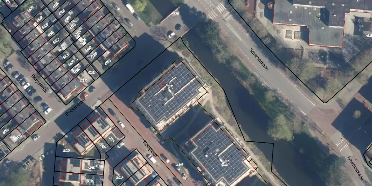 Het perceel waarop Robijnstraat 216 staat heeft een oppervlakte van 3196 m². Dit is een zeer groot perceel. De perceeloppervlakte wordt geregistreerd door het Kadaster. Gedetailleerde informatie over de maten van dit perceel kunt u vinden in het rapport Kadastrale kaart met maatvoering van Robijnstraat 216.