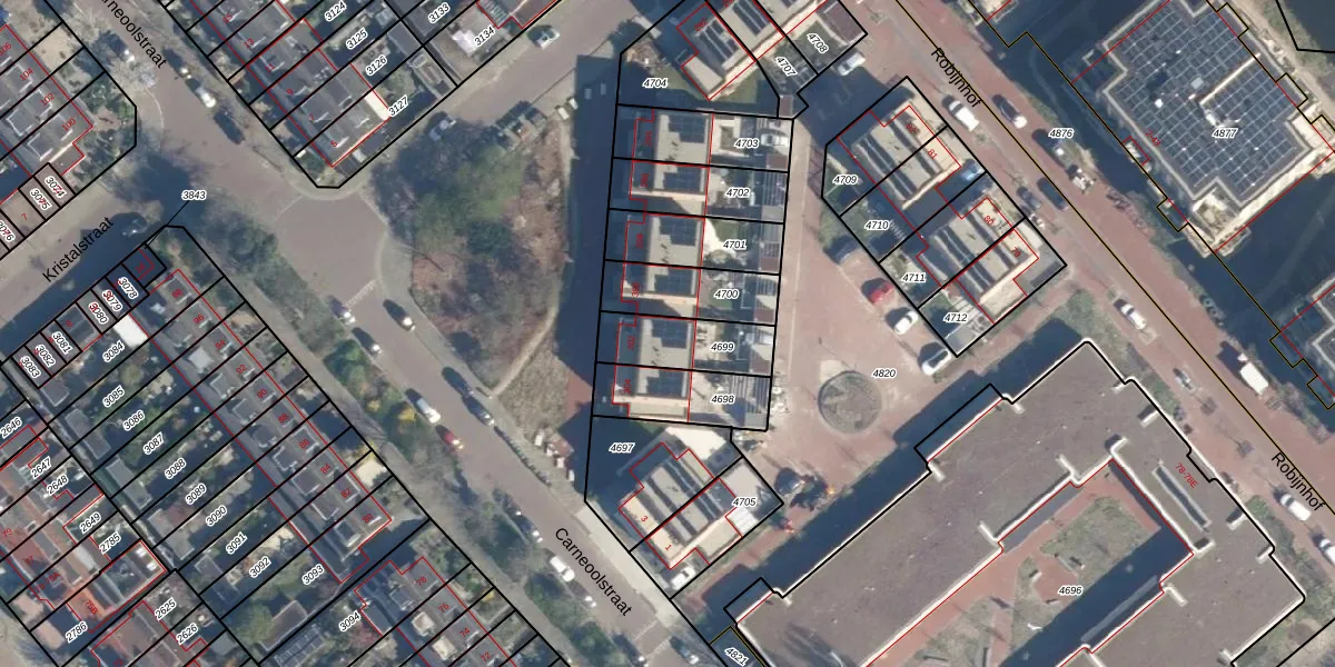 Het perceel waarop Robijnstraat 302 staat heeft een oppervlakte van 204 m². Dit is een middelgroot perceel. De perceeloppervlakte wordt geregistreerd door het Kadaster. Gedetailleerde informatie over de maten van dit perceel kunt u vinden in het rapport Kadastrale kaart met maatvoering van Robijnstraat 302.