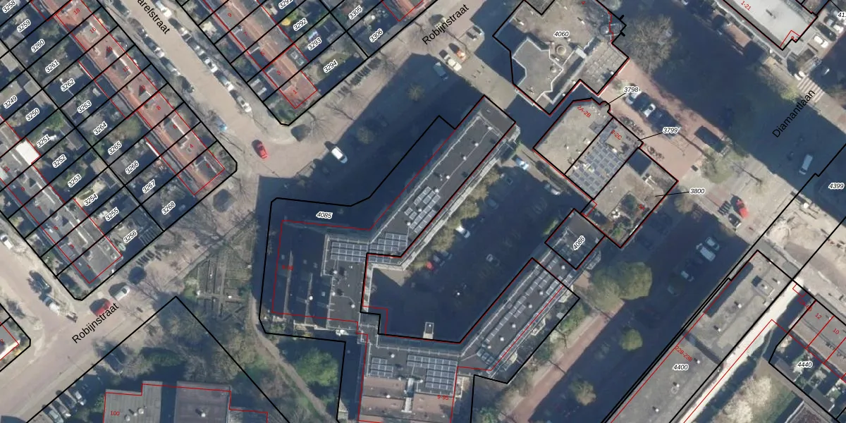 Robijnstraat 42 is gelegen op kadastraal perceel LDN01X4085. Deze kadastrale aanduiding is uniek en wordt gebruikt door het Kadaster om eigendomsrechten en andere zakelijke rechten vast te leggen. Het perceel maakt onderdeel uit van de kadastrale gemeente Leiden.