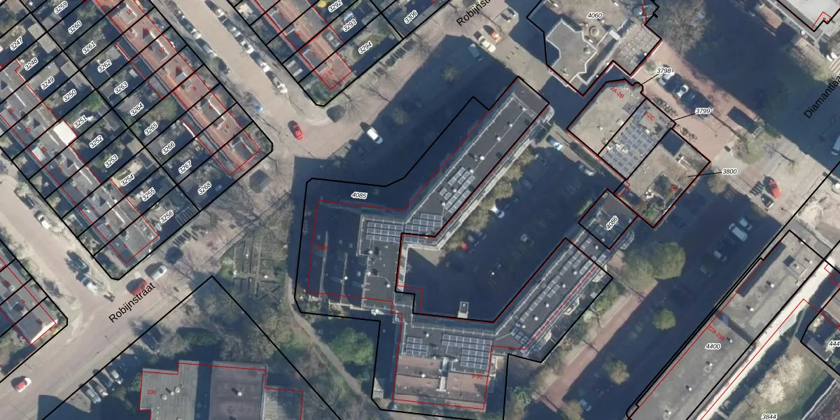 Het perceel waarop Robijnstraat 94 staat heeft een oppervlakte van 2493 m². Dit is een zeer groot perceel. De perceeloppervlakte wordt geregistreerd door het Kadaster. Gedetailleerde informatie over de maten van dit perceel kunt u vinden in het rapport Kadastrale kaart met maatvoering van Robijnstraat 94.