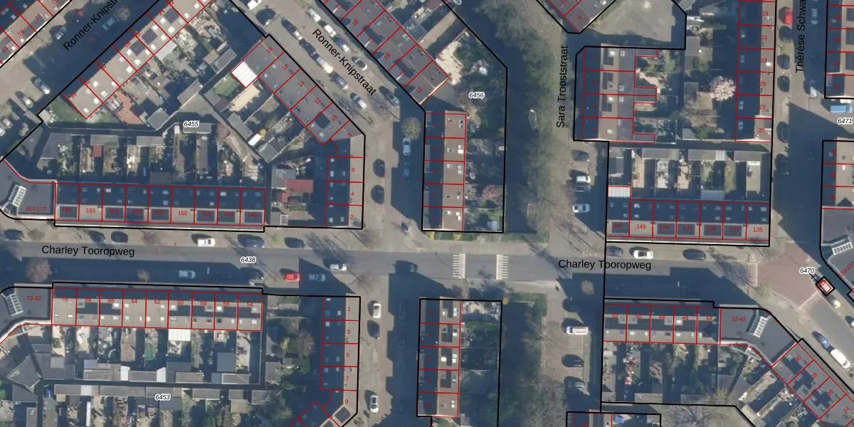 Het adres ligt op het perceel LDN01-W-6456, dat zich in de kadastrale gemeente Leiden bevindt. Het perceel is met 1982 m² relatief groot. Het gemiddelde ligt in de kadastrale gemeente Leiden op 703,94 m². De grootste perceeloppervlakte in de kadastrale gemeente is 51,8 ha. De kleinste oppervlakte bedraagt 0 m². Op het perceel zijn 16 adressen aanwezig. De huidige grenzen van het perceel zijn digitaal in de Basisregistratie Kadaster (BRK) geregistreerd op 29-08-2003.