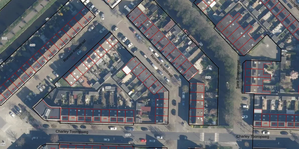 Ronner-Knipstraat 14 is gelegen op kadastraal perceel LDN01W6455. Deze kadastrale aanduiding is uniek en wordt gebruikt door het Kadaster om eigendomsrechten en andere zakelijke rechten vast te leggen. Het perceel maakt onderdeel uit van de kadastrale gemeente Leiden.