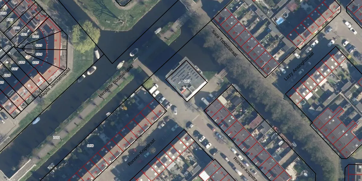 Ronner-Knipstraat 59 is gelegen op kadastraal perceel LDN01W6457. Deze kadastrale aanduiding is uniek en wordt gebruikt door het Kadaster om eigendomsrechten en andere zakelijke rechten vast te leggen. Het perceel maakt onderdeel uit van de kadastrale gemeente Leiden.