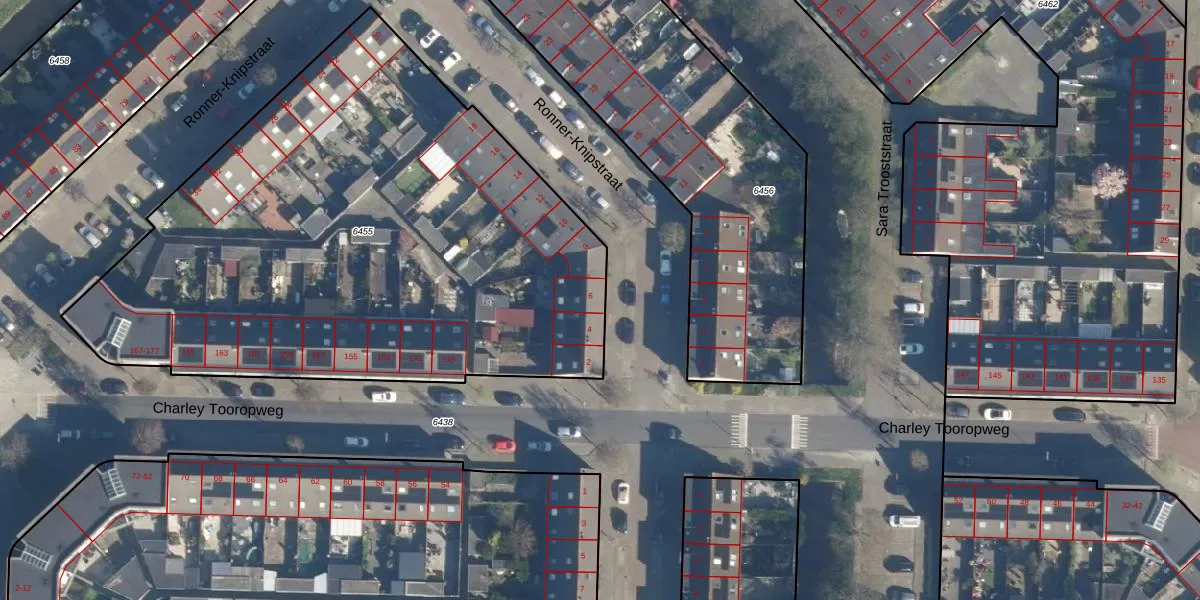 Ronner-Knipstraat 6 is gelegen op kadastraal perceel LDN01W6455. Deze kadastrale aanduiding is uniek en wordt gebruikt door het Kadaster om eigendomsrechten en andere zakelijke rechten vast te leggen. Het perceel maakt onderdeel uit van de kadastrale gemeente Leiden.