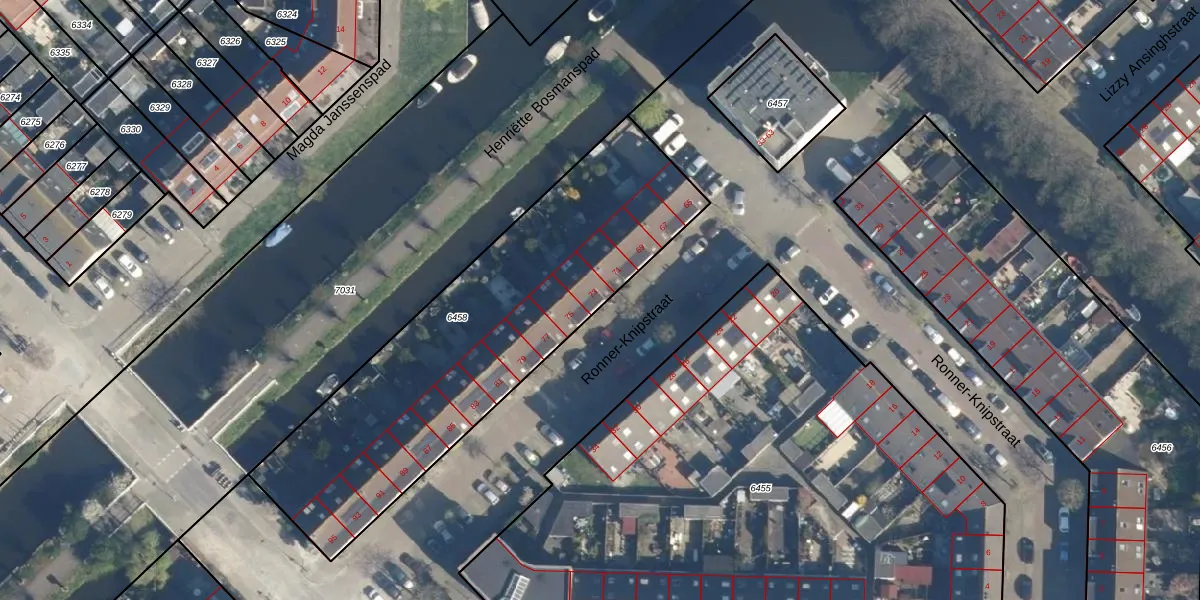Ronner-Knipstraat 73 is gelegen op kadastraal perceel LDN01W6458. Deze kadastrale aanduiding is uniek en wordt gebruikt door het Kadaster om eigendomsrechten en andere zakelijke rechten vast te leggen. Het perceel maakt onderdeel uit van de kadastrale gemeente Leiden.