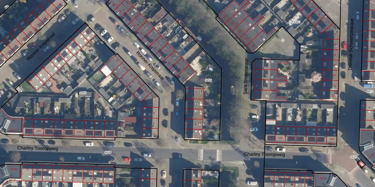 Het adres ligt op het perceel LDN01-W-6456, dat zich in de kadastrale gemeente Leiden bevindt. Het perceel is met 1982 m² relatief groot. Het gemiddelde ligt in de kadastrale gemeente Leiden op 703,94 m². De grootste perceeloppervlakte in de kadastrale gemeente is 51,8 ha. De kleinste oppervlakte bedraagt 0 m². Op het perceel zijn 16 adressen aanwezig. De laatste wijziging in het de Basisregistratie Kadaster (BRK) was op 29-08-2003.
