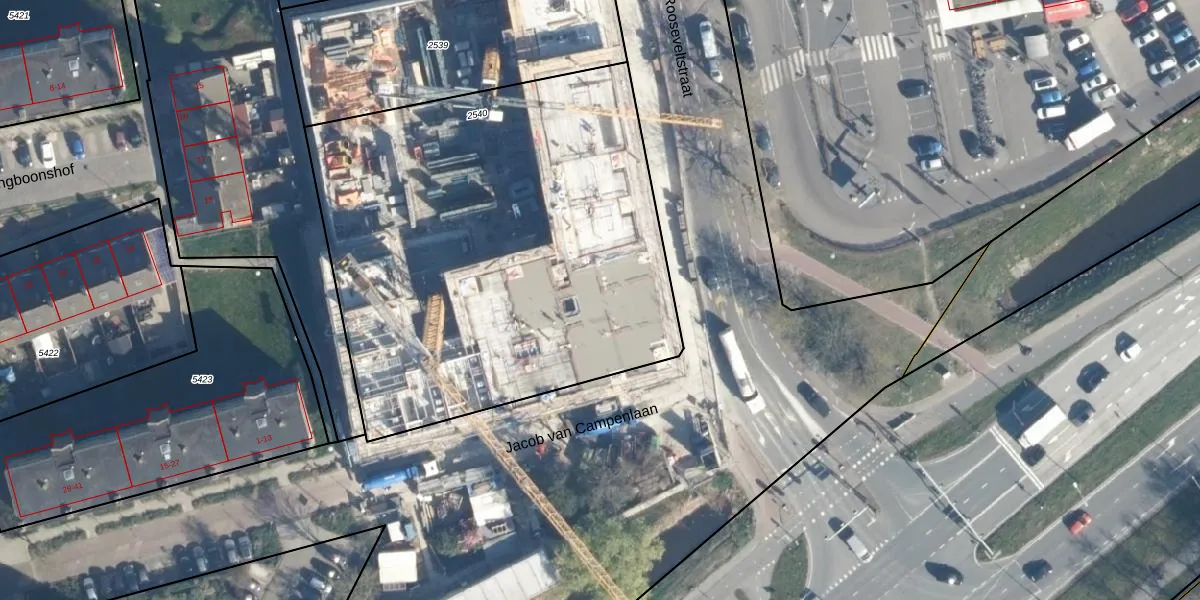 Het perceel waarop Rooseveltstraat 117 staat heeft een oppervlakte van 2845 m². Dit is een zeer groot perceel. De perceeloppervlakte wordt geregistreerd door het Kadaster. Gedetailleerde informatie over de maten van dit perceel kunt u vinden in het rapport Kadastrale kaart met maatvoering van Rooseveltstraat 117.