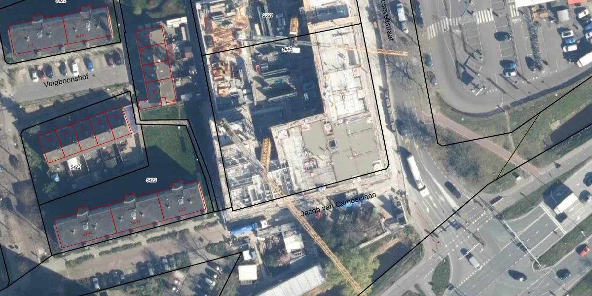 Het adres is gelegen op perceel 2540 in de sectie O en de kadastrale gemeente Leiden. De kadastrale aanduiding is aldus LDN01-O-2540. Het perceel is met 2845 m² relatief groot. Het gemiddelde ligt in de kadastrale gemeente Leiden op 703,94 m². De grootste perceeloppervlakte in de kadastrale gemeente is 51,8 ha. De kleinste oppervlakte bedraagt 0 m². Op het perceel zijn 127 adressen aanwezig. In de Basisregistratie Kadaster (BRK) werden de grenzen van het perceel geregistreerd op 06-01-2005.