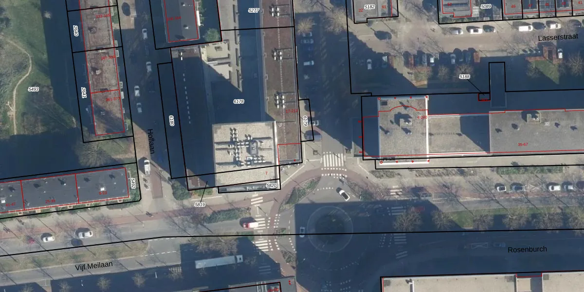Het perceel waarop het adres ligt is LDN01-O-6178. De afkorting 'LDN01' staat voor kadastrale gemeente Leiden. Het perceel is met 1917 m² relatief groot. Het gemiddelde ligt in de kadastrale gemeente Leiden op 703,99 m². Het grootste perceel in de kadastrale gemeente is 51,8 ha. Het kleinste perceel heeft een oppervlakte van 0 m². Op het perceel zijn 62 adressen aanwezig. In de Basisregistratie Kadaster (BRK) werden de grenzen van het perceel geregistreerd op 21-12-2021.