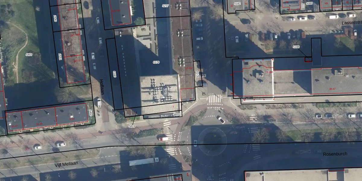Het perceel waarop het adres ligt is LDN01-O-6178. De afkorting 'LDN01' staat voor kadastrale gemeente Leiden. Het perceel is met 1917 m² relatief groot. Het gemiddelde ligt in de kadastrale gemeente Leiden op 703,99 m². Het grootste perceel in de kadastrale gemeente is 51,8 ha. Het kleinste perceel heeft een oppervlakte van 0 m². Op het perceel zijn 62 adressen aanwezig. De huidige grenzen van het perceel zijn digitaal in de Basisregistratie Kadaster (BRK) geregistreerd op 21-12-2021.