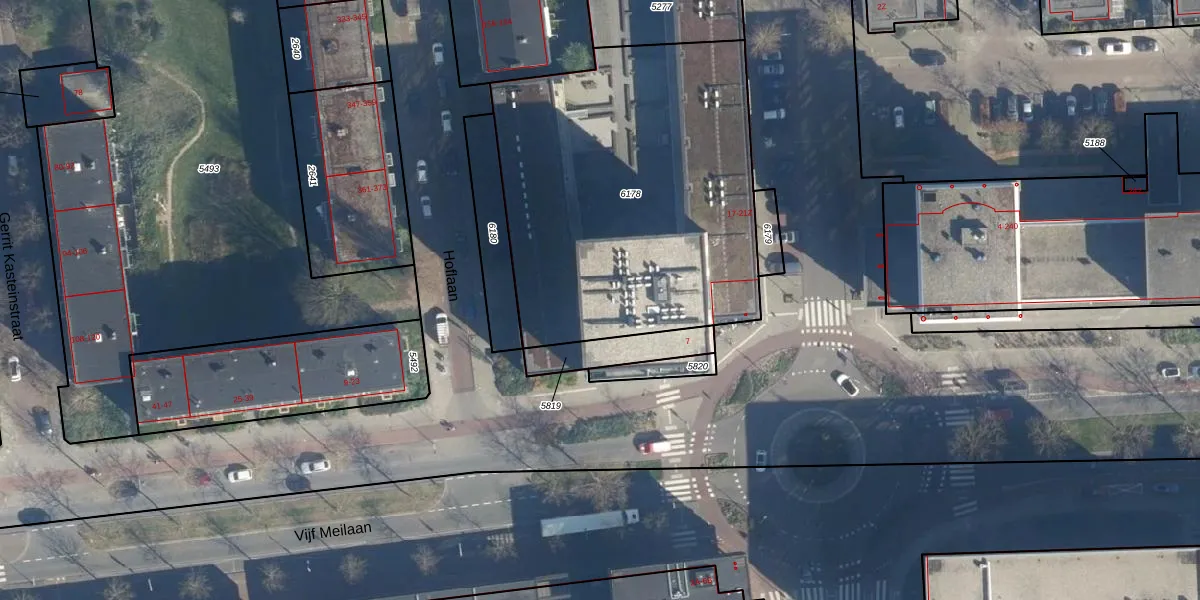 Het perceel waarop het adres ligt is LDN01-O-6178. De afkorting 'LDN01' staat voor kadastrale gemeente Leiden. Het perceel is met 1917 m² relatief groot. Het gemiddelde ligt in de kadastrale gemeente Leiden op 703,99 m². Het kleinste perceel in de kadastrale gemeente is 0 m² groot. De grootste perceeloppervlakte is 51,8 ha. Op het perceel liggen in totaal 62 adressen. De huidige grenzen van het perceel zijn digitaal in de Basisregistratie Kadaster (BRK) geregistreerd op 21-12-2021.
