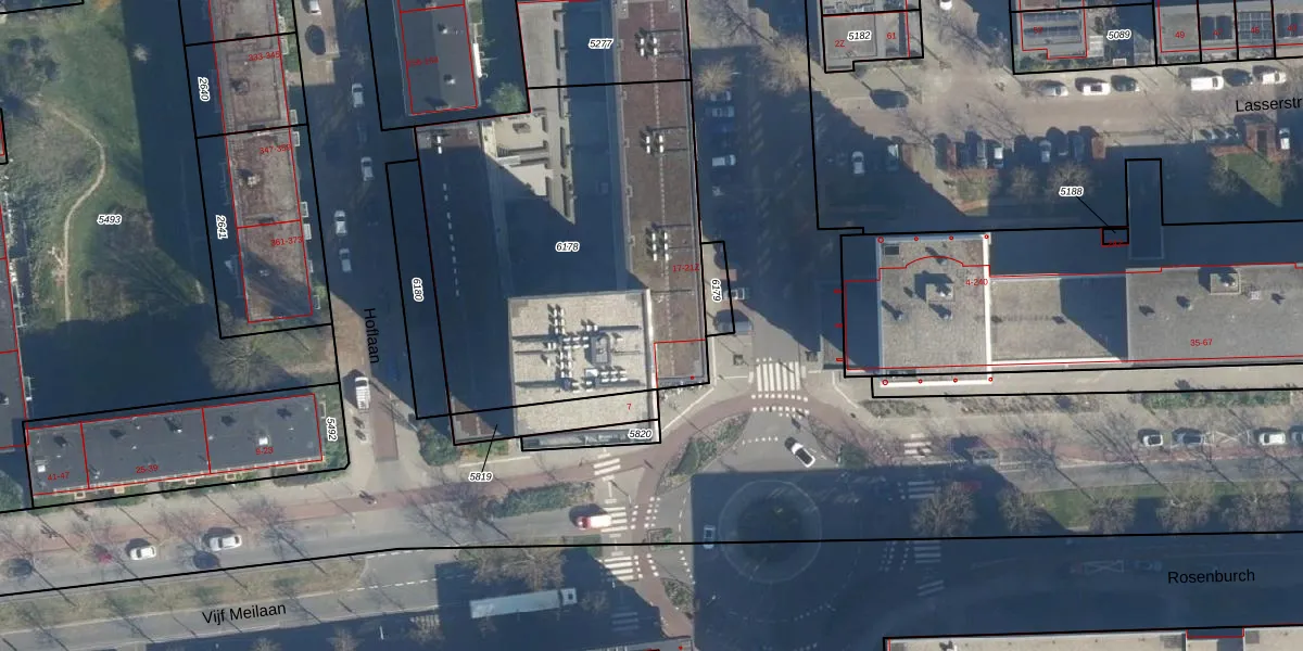Het perceel waarop het adres ligt is LDN01-O-6178. De afkorting 'LDN01' staat voor kadastrale gemeente Leiden. Het perceel is met 1917 m² relatief groot. Het gemiddelde ligt in de kadastrale gemeente Leiden op 703,99 m². Het kleinste perceel in de kadastrale gemeente is 0 m² groot. De grootste perceeloppervlakte is 51,8 ha. Op het perceel liggen in totaal 62 adressen. In de Basisregistratie Kadaster (BRK) werden de grenzen van het perceel geregistreerd op 21-12-2021.