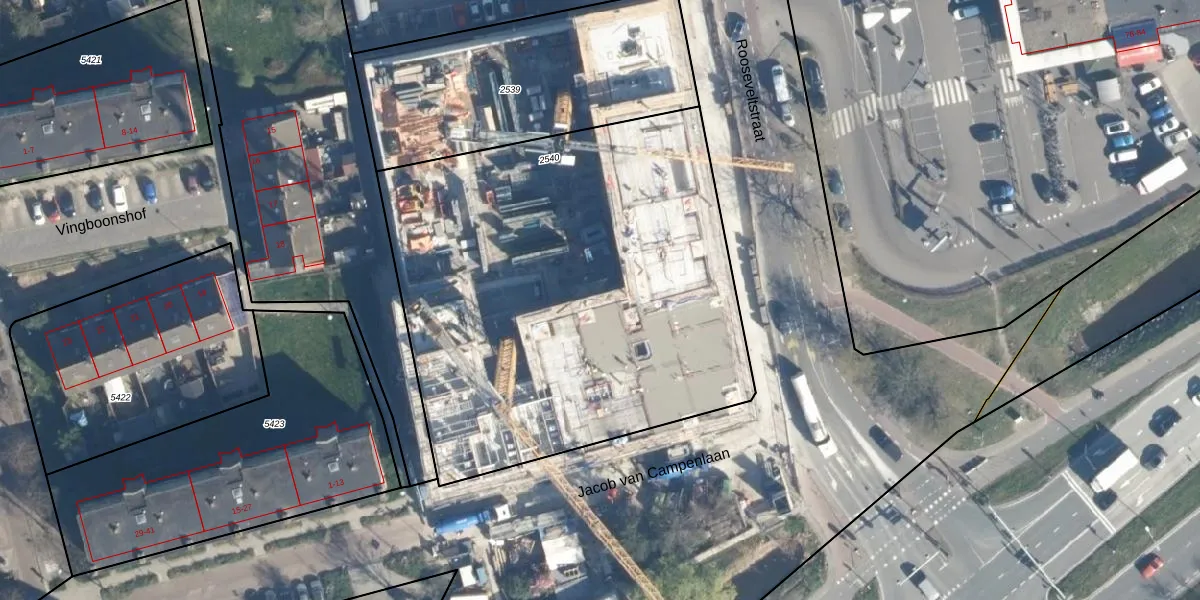 Het perceel waarop Rooseveltstraat 187 staat heeft een oppervlakte van 2845 m². Dit is een zeer groot perceel. De perceeloppervlakte wordt geregistreerd door het Kadaster. Gedetailleerde informatie over de maten van dit perceel kunt u vinden in het rapport Kadastrale kaart met maatvoering van Rooseveltstraat 187.