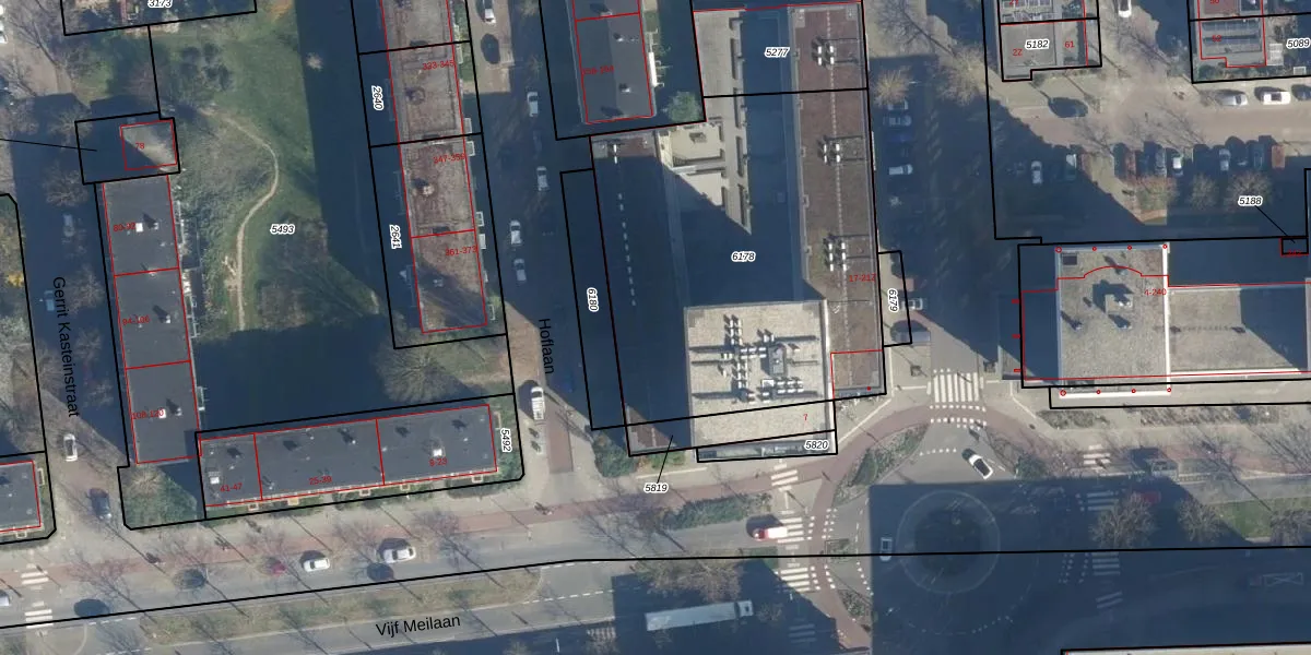 Het perceel waarop het adres ligt is LDN01-O-6178. De afkorting 'LDN01' staat voor kadastrale gemeente Leiden. Het perceel is met 1917 m² relatief groot. Het gemiddelde ligt in de kadastrale gemeente Leiden op 703,99 m². Het kleinste perceel in de kadastrale gemeente is 0 m² groot. De grootste perceeloppervlakte is 51,8 ha. Op het perceel zijn 62 adressen aanwezig. De huidige grenzen van het perceel zijn digitaal in de Basisregistratie Kadaster (BRK) geregistreerd op 21-12-2021.
