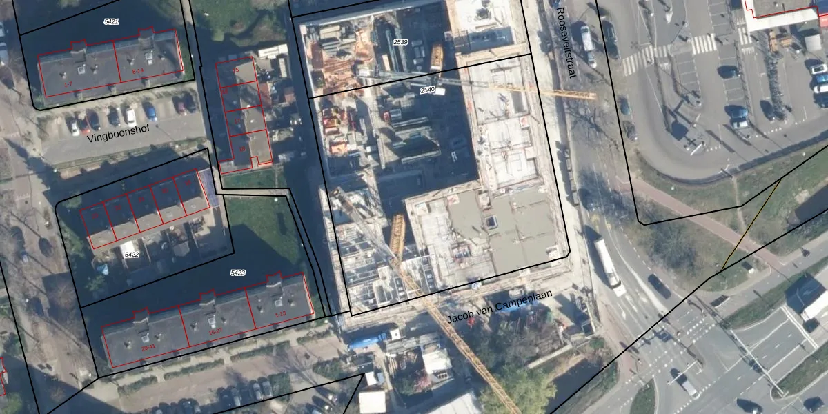 Het perceel waarop Rooseveltstraat 193 staat heeft een oppervlakte van 2845 m². Dit is een zeer groot perceel. De perceeloppervlakte wordt geregistreerd door het Kadaster. Gedetailleerde informatie over de maten van dit perceel kunt u vinden in het rapport Kadastrale kaart met maatvoering van Rooseveltstraat 193.