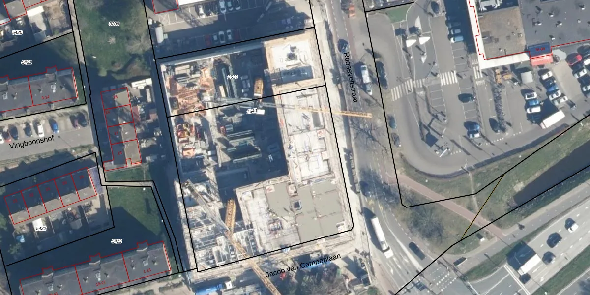 Het perceel waarop Rooseveltstraat 227 staat heeft een oppervlakte van 2845 m². Dit is een zeer groot perceel. De perceeloppervlakte wordt geregistreerd door het Kadaster. Gedetailleerde informatie over de maten van dit perceel kunt u vinden in het rapport Kadastrale kaart met maatvoering van Rooseveltstraat 227.