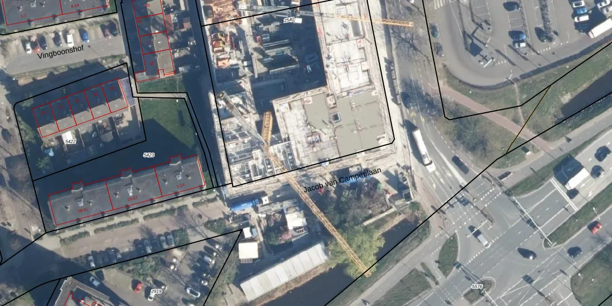 Het adres is gelegen op perceel 2540 in de sectie O en de kadastrale gemeente Leiden. De kadastrale aanduiding is aldus LDN01-O-2540. Het perceel is met 2845 m² relatief groot. Het gemiddelde ligt in de kadastrale gemeente Leiden op 703,94 m². Het kleinste perceel in de kadastrale gemeente is 0 m² groot. De grootste perceeloppervlakte is 51,8 ha. Op het perceel zijn 127 adressen aanwezig. De huidige grenzen van het perceel zijn digitaal in de Basisregistratie Kadaster (BRK) geregistreerd op 06-01-2005.