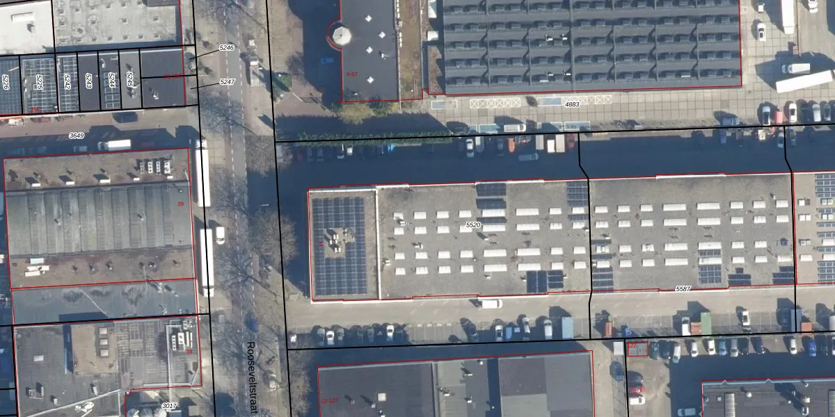 Het perceel waarop Rooseveltstraat 8-A-5 staat heeft een oppervlakte van 3678 m². Dit is een zeer groot perceel. De perceeloppervlakte wordt geregistreerd door het Kadaster. Gedetailleerde informatie over de maten van dit perceel kunt u vinden in het rapport Kadastrale kaart met maatvoering van Rooseveltstraat 8-A-5.