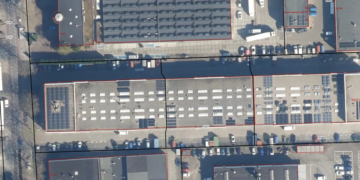 Het perceel waarop Rooseveltstraat 8-A-13 staat heeft een oppervlakte van 2435 m². Dit is een zeer groot perceel. De perceeloppervlakte wordt geregistreerd door het Kadaster. Gedetailleerde informatie over de maten van dit perceel kunt u vinden in het rapport Kadastrale kaart met maatvoering van Rooseveltstraat 8-A-13.
