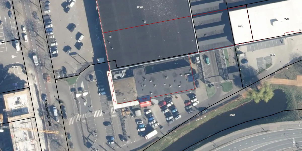 Het perceel waarop Rooseveltstraat 82-A staat heeft een oppervlakte van 1,1 ha. Dit is een zeer groot perceel. De perceeloppervlakte wordt geregistreerd door het Kadaster. Gedetailleerde informatie over de maten van dit perceel kunt u vinden in het rapport Kadastrale kaart met maatvoering van Rooseveltstraat 82-A.