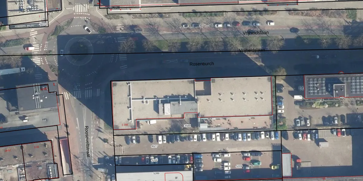 Het perceel waarop Rosenburch 103 staat heeft een oppervlakte van 2705 m². Dit is een zeer groot perceel. De perceeloppervlakte wordt geregistreerd door het Kadaster. Gedetailleerde informatie over de maten van dit perceel kunt u vinden in het rapport Kadastrale kaart met maatvoering van Rosenburch 103.