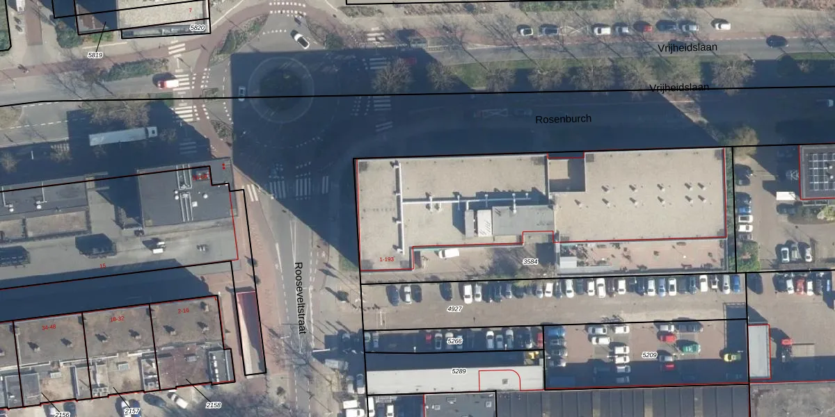 Het perceel waarop Rosenburch 170 staat heeft een oppervlakte van 2705 m². Dit is een zeer groot perceel. De perceeloppervlakte wordt geregistreerd door het Kadaster. Gedetailleerde informatie over de maten van dit perceel kunt u vinden in het rapport Kadastrale kaart met maatvoering van Rosenburch 170.