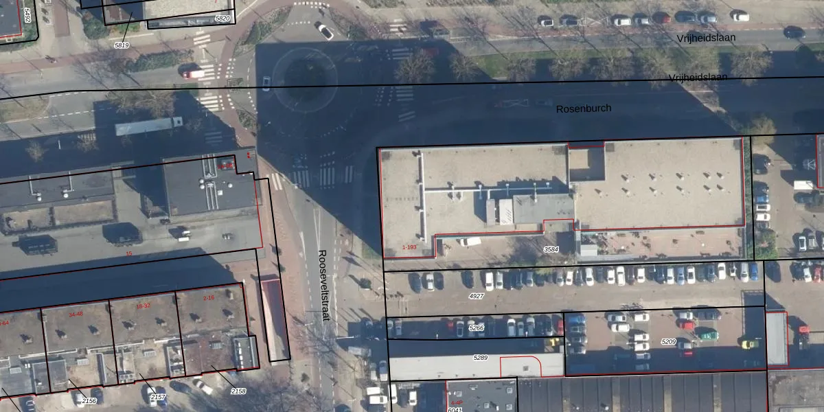 Het perceel waarop Rosenburch 192 staat heeft een oppervlakte van 2705 m². Dit is een zeer groot perceel. De perceeloppervlakte wordt geregistreerd door het Kadaster. Gedetailleerde informatie over de maten van dit perceel kunt u vinden in het rapport Kadastrale kaart met maatvoering van Rosenburch 192.