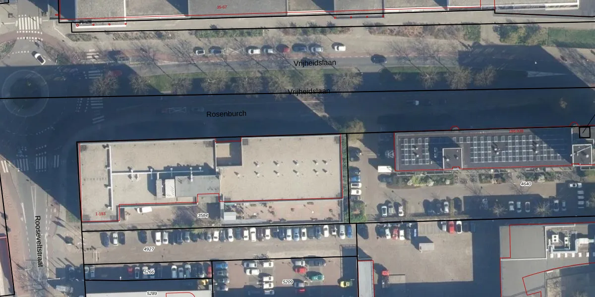 Het perceel waarop Rosenburch 24 staat heeft een oppervlakte van 2705 m². Dit is een zeer groot perceel. De perceeloppervlakte wordt geregistreerd door het Kadaster. Gedetailleerde informatie over de maten van dit perceel kunt u vinden in het rapport Kadastrale kaart met maatvoering van Rosenburch 24.