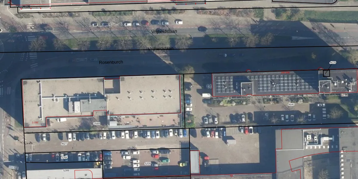 Het perceel waarop Rosenburch 43 staat heeft een oppervlakte van 2705 m². Dit is een zeer groot perceel. De perceeloppervlakte wordt geregistreerd door het Kadaster. Gedetailleerde informatie over de maten van dit perceel kunt u vinden in het rapport Kadastrale kaart met maatvoering van Rosenburch 43.
