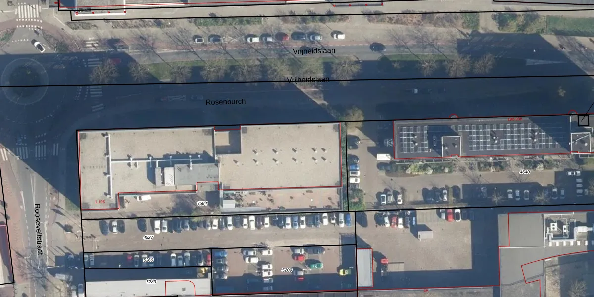 Het perceel waarop Rosenburch 48 staat heeft een oppervlakte van 2705 m². Dit is een zeer groot perceel. De perceeloppervlakte wordt geregistreerd door het Kadaster. Gedetailleerde informatie over de maten van dit perceel kunt u vinden in het rapport Kadastrale kaart met maatvoering van Rosenburch 48.