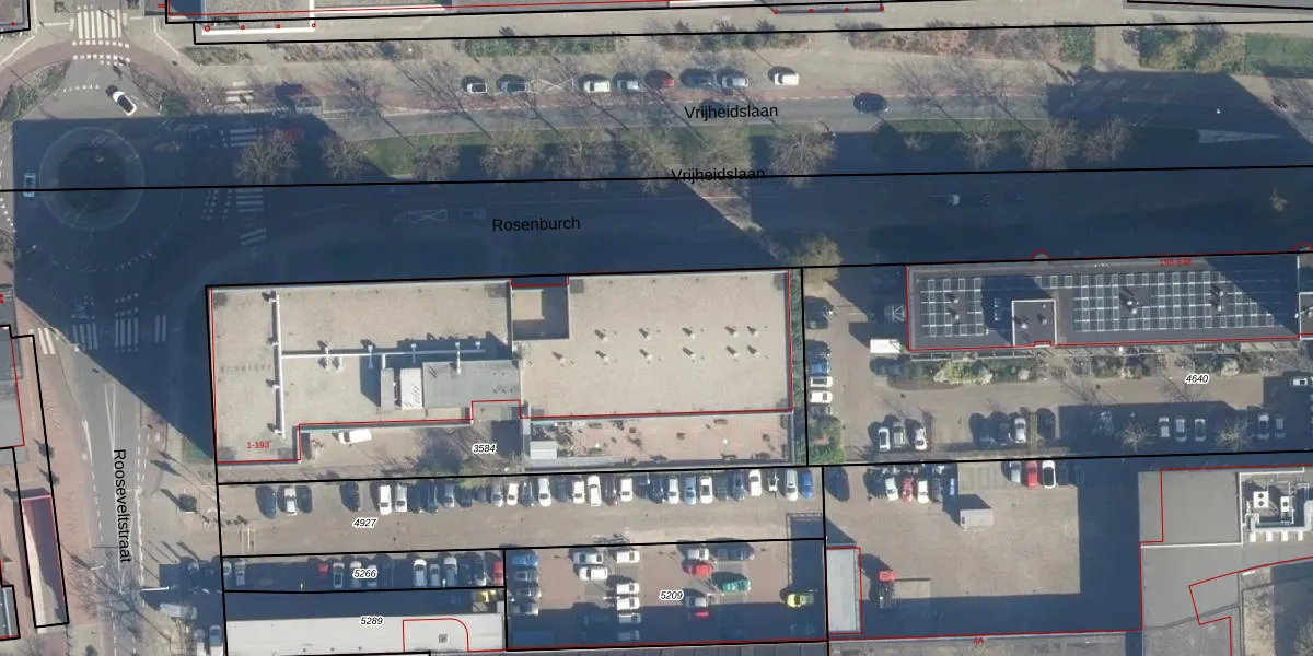 Het perceel waarop Rosenburch 50 staat heeft een oppervlakte van 2705 m². Dit is een zeer groot perceel. De perceeloppervlakte wordt geregistreerd door het Kadaster. Gedetailleerde informatie over de maten van dit perceel kunt u vinden in het rapport Kadastrale kaart met maatvoering van Rosenburch 50.