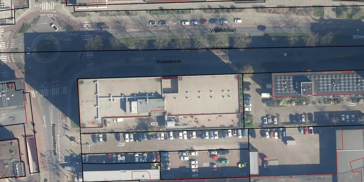 Het perceel waarop Rosenburch 54 staat heeft een oppervlakte van 2705 m². Dit is een zeer groot perceel. De perceeloppervlakte wordt geregistreerd door het Kadaster. Gedetailleerde informatie over de maten van dit perceel kunt u vinden in het rapport Kadastrale kaart met maatvoering van Rosenburch 54.