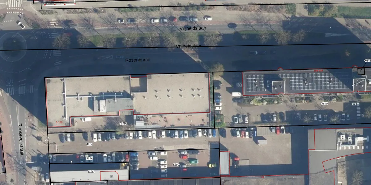 Het perceel waarop Rosenburch 59 staat heeft een oppervlakte van 2705 m². Dit is een zeer groot perceel. De perceeloppervlakte wordt geregistreerd door het Kadaster. Gedetailleerde informatie over de maten van dit perceel kunt u vinden in het rapport Kadastrale kaart met maatvoering van Rosenburch 59.