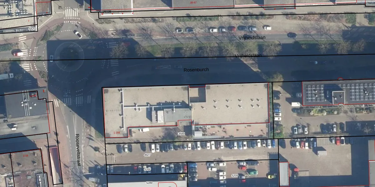 Het perceel waarop Rosenburch 81 staat heeft een oppervlakte van 2705 m². Dit is een zeer groot perceel. De perceeloppervlakte wordt geregistreerd door het Kadaster. Gedetailleerde informatie over de maten van dit perceel kunt u vinden in het rapport Kadastrale kaart met maatvoering van Rosenburch 81.
