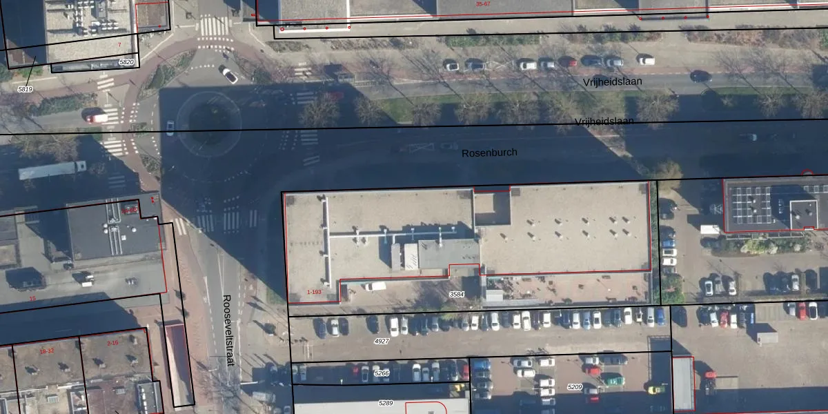Het perceel waarop Rosenburch 85 staat heeft een oppervlakte van 2705 m². Dit is een zeer groot perceel. De perceeloppervlakte wordt geregistreerd door het Kadaster. Gedetailleerde informatie over de maten van dit perceel kunt u vinden in het rapport Kadastrale kaart met maatvoering van Rosenburch 85.